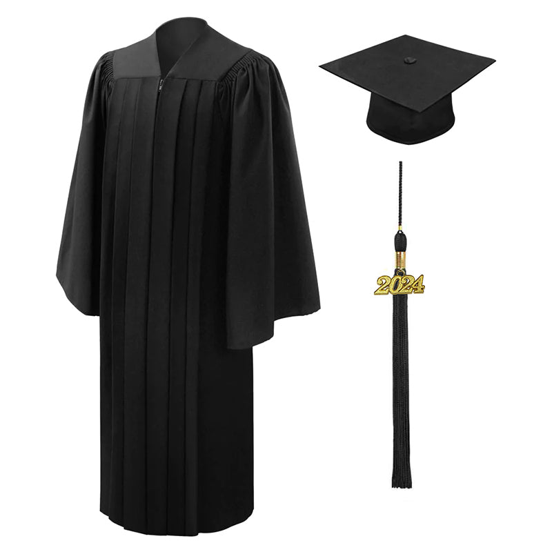 Deluxe Black High School Graduation Cap & Gown Fluted Cap & Gown
